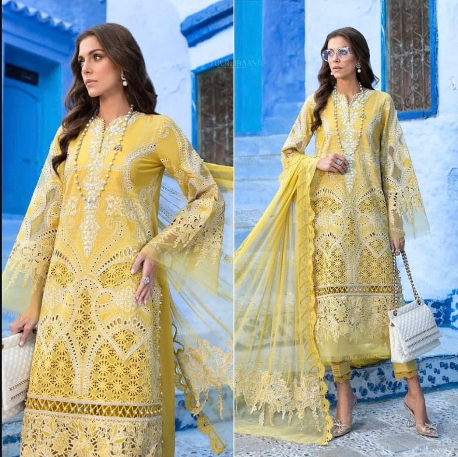 Voyage Eid Luxury Lawn 2025 Indulge in luxury with Maria B's Voyage A Luxe 2025! Elegant designs, intricate embroidery, and premium fabrics